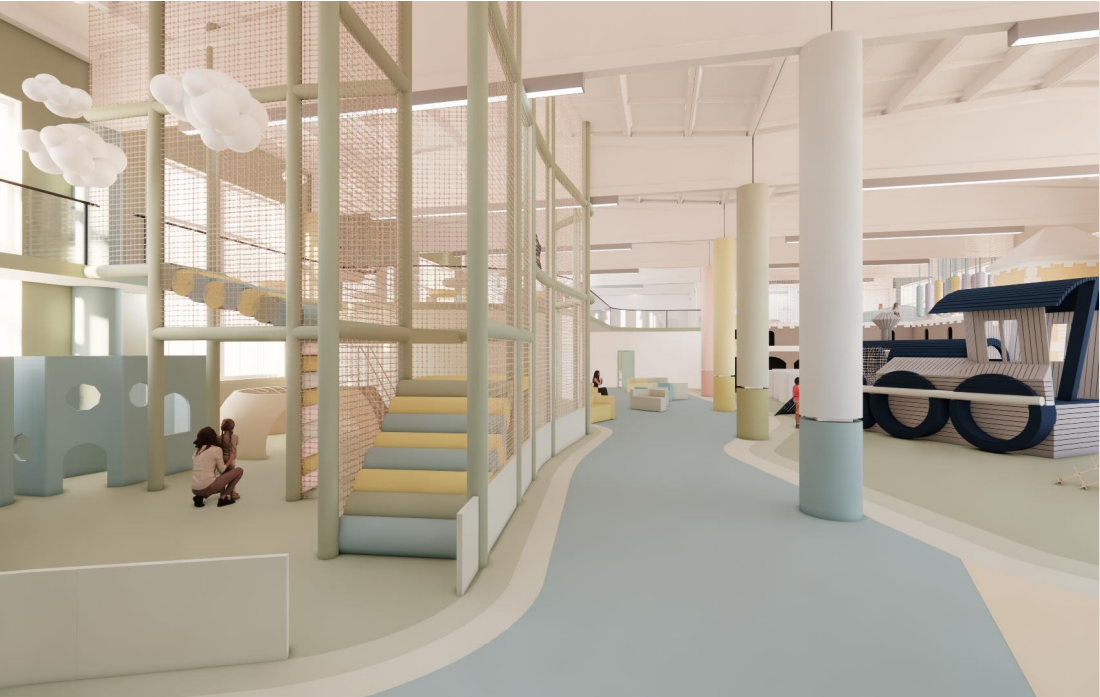 “SAGARA” is a conceptual project that transforms an industrial building into a children’s entertainment center based on the city of Ventspils and objects important to it. The interior of the center “SAGARA” is being created as a stylized part of Ventspils, where the Venta river flows into the sea.